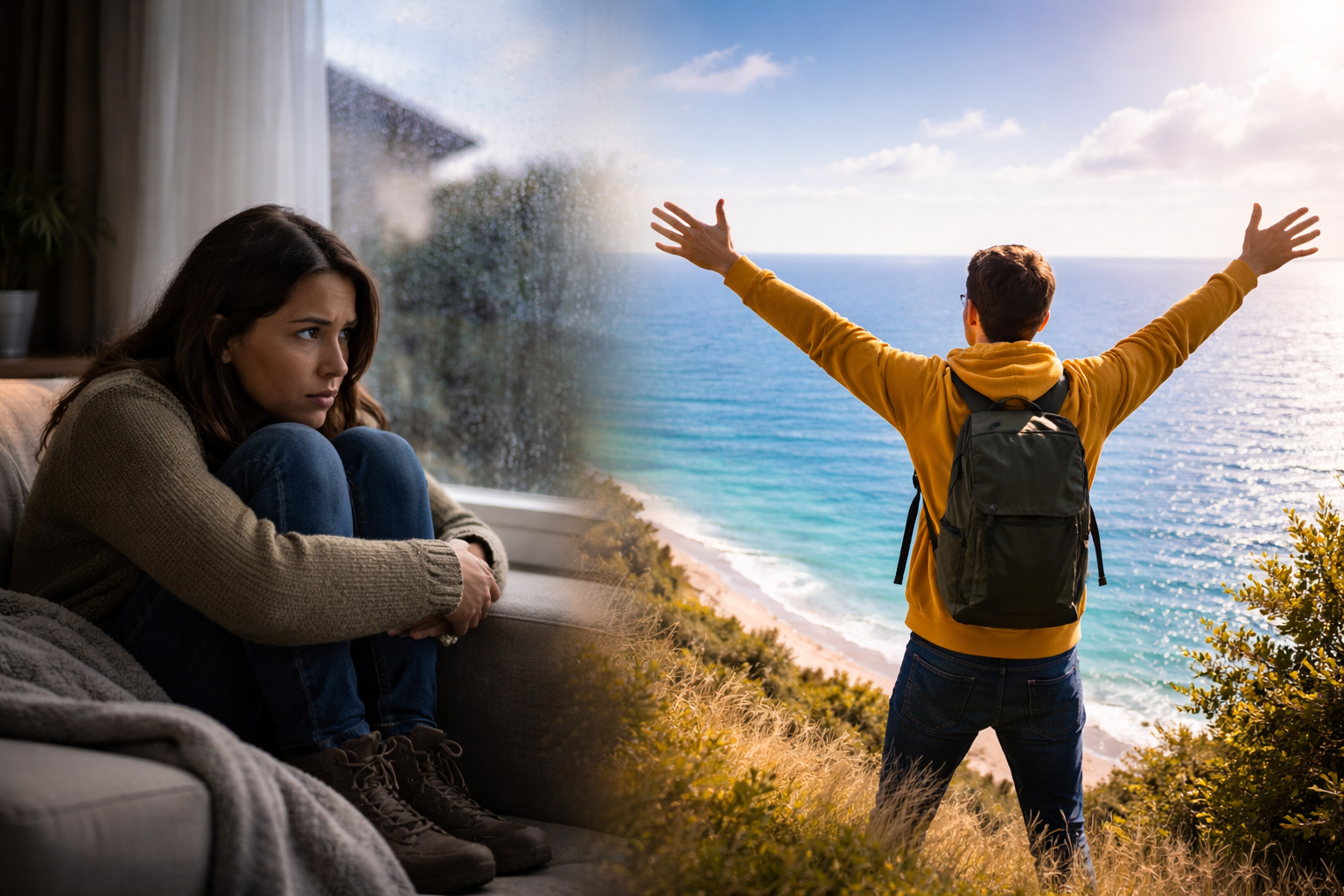 Un homme avance sur son chemin en portant un sac très lourd. Son rythme soutenu et son expression crispée trahissent…
